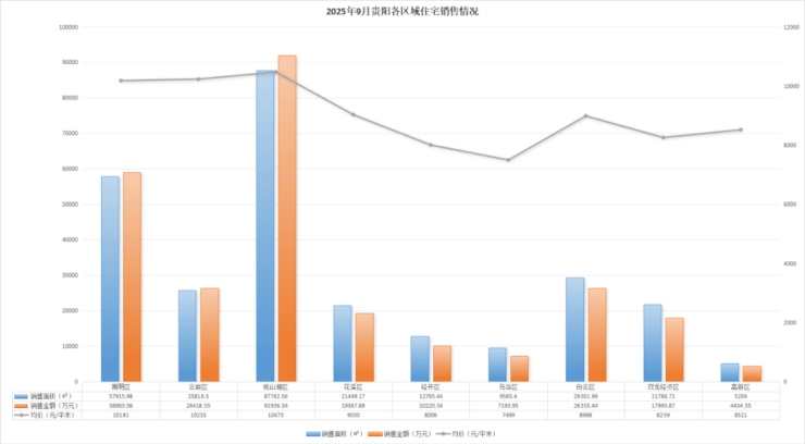数据显示,2025年9月,贵阳市(含三县一市)销售商品房3358套,销售面积37.15万方,销售金额34.19亿元;