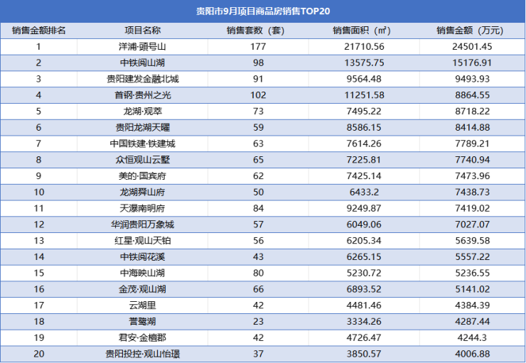 贵阳主城楼市月报|9月,洋浦頭号山凭半月销量登顶,市场总体维持稳定