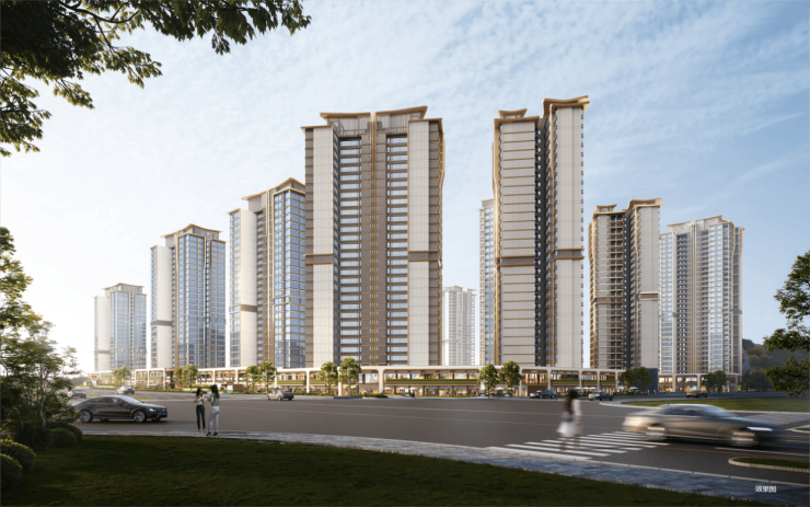 目前新推的观山及第组团,在产品力上更是再度升级。外立面作为项目气质的直观表达,观山及第以香槟金金属线条勾勒飞翼流线,搭配通透玻璃立面,呈现出“晶钻镜面”的美学效果。顶部融入宋式官帽与博士帽造型元素,呼应“登科及第”的美好寓意。而园林景观方面,社区规划约2万方大中庭,通过“二轴一心多节点”的布局,叠山理水,营造出步移景异的园林意境。