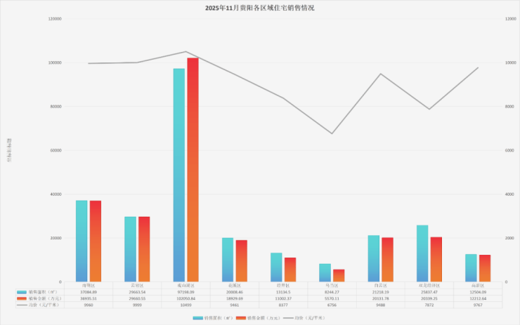 与此同时,观山湖区的楼市在11月份也是继续领跑、量价齐高,对其他区域的相对优势又拉大了一些。