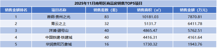 据贵州省房协发布的最新一期贵阳贵安楼市月报,2025年11月份,贵阳市(含三县一市)销售商品房2994套,销售面积33.73万方,销售金额31.79亿元;