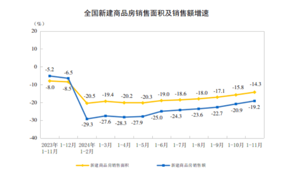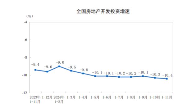 统计局:1—11月全国房地产开发投资同比下降10.4%