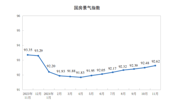 11月份,房地产开发景气指数(简称“国房景气指数”)为92.62。