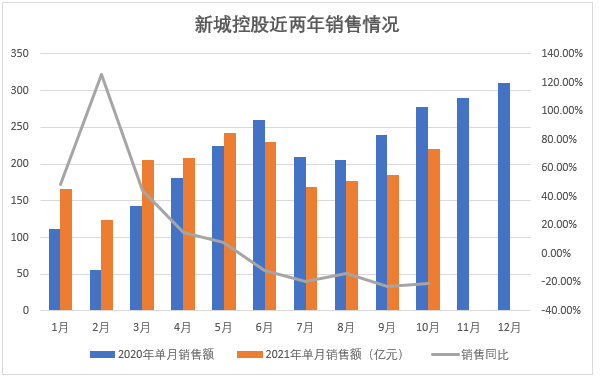 2021年,新城控股将销售目标锁定为2600亿元,截至10月底,该公司已完成全年销售的74.2%。