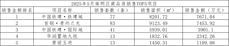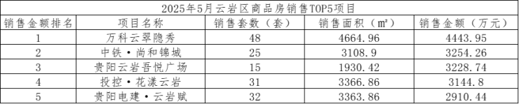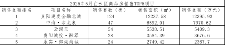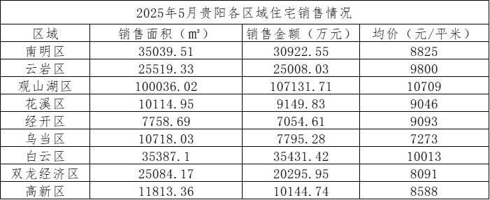 数据显示,2025年5月,贵阳市(含三县一市)销售商品房3679套,销售面积37.84万方,销售金额34.77亿元;