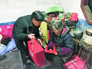 ▲开展脱贫攻坚兜底保障过程中,党员志愿者(右)向村民了解情况