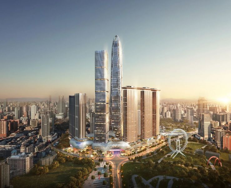 同时,贵州文化广场还将打造媲美新加坡金沙酒店的云顶会所,380m塔楼楼顶建造直升机停机坪。
