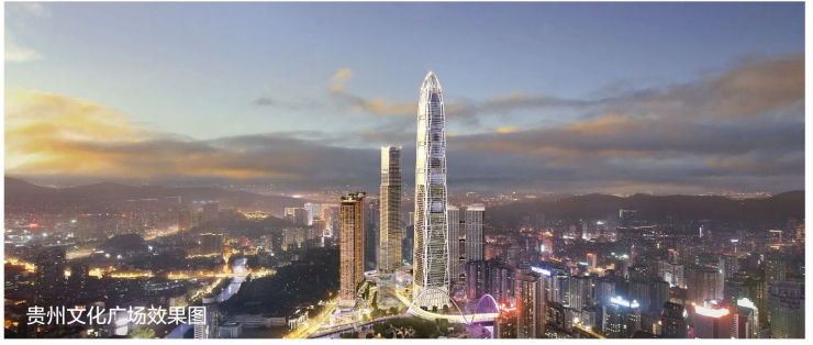 据了解,贵州文化广场总投资约300亿元,规划总用地面积15.6万余平方米,总建筑面积230万余平方米,累计完成投资约25亿元,建筑高度为450米的 “文化之塔”,是未来贵阳市最重要的地标建筑之一。
