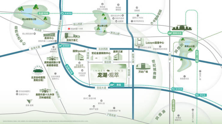 该项目北邻居然之家、南接百花大道,坐拥地铁2号线茶园站便捷通勤,百花大道、数博大道等多条主干道构成的高效路网。同时,项目周边环绕着世纪金源、居然之家等成熟商圈,还能迅速连接贵阳万象汇、荔星中心等顶级商业中心。可以说,从交通、商业、教育、医疗等基础配套,到未来的发展潜力,这块土地天生就具备孕育高端改善产品的基因,为龙湖提供了广阔的施展空间,进而重塑贵阳高品质居住的新标杆。