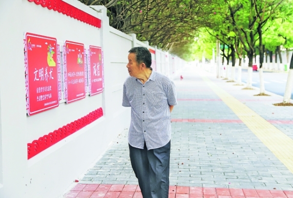 同时,贵阳经开区还重建了总长度达200米的两面文化墙,并悬挂了公益广告60余幅。“文化墙修得很漂亮,显得整条道路都干净整洁了不少。”8月30日早上,67岁的市民杨建华老人一边散步,一边浏览文化墙上的内容。