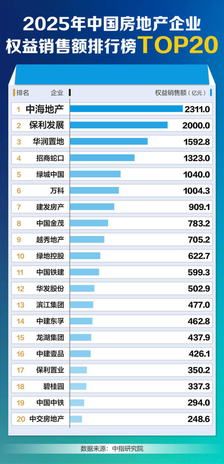 2025年房企销售额排位赛出炉:前十门槛卡线千亿,谁进谁退?