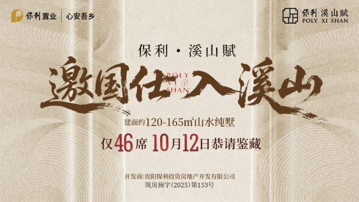 而10月12日,项目正式推出建面约120-165㎡山水纯墅,仅46席。这不仅是一次购房选择,更是收藏一种东方中式的美学力、央企精工的品质力、圈层共鸣的生活力。若你要寻一方院墅,实现居住梦想,保利•溪山赋,值得赴约。