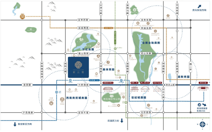 项目位于集会展、金融、政治、经济、文化于一体的金融城CBD核心,坐拥代表贵阳“长安街“的林城东路核心段,是金融城CBD一公里范围内唯一坐拥双公园项目;