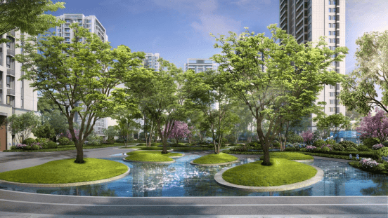 项目背靠国家级1.6万亩长坡岭森林公园,内含8.9万方市政山湖公园,户户登堂入园设计,一窗尽观山湖城园,豪宅级生态资源占有,纳藏山水意趣,品味山与湖。自然静谧的林下空间,开敞舒朗的阳光草坪,耳边清脆悦耳的跌水声,静享自然气息。