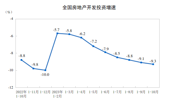 国家统计局:1-10月份全国房地产开发投资同比下降9.3%
