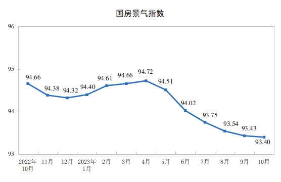 10月份,房地产开发景气指数(简称“国房景气指数”)为93.40。