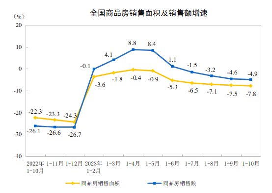 11月15日,国家统计局发布2023年1—10月份全国房地产市场基本情况。