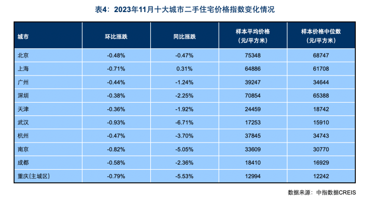 二手住宅价格环比下跌的城市个数则为99个,数量较10月增加1个,下跌城市已连续6个月超90城,房价普跌态势延续。