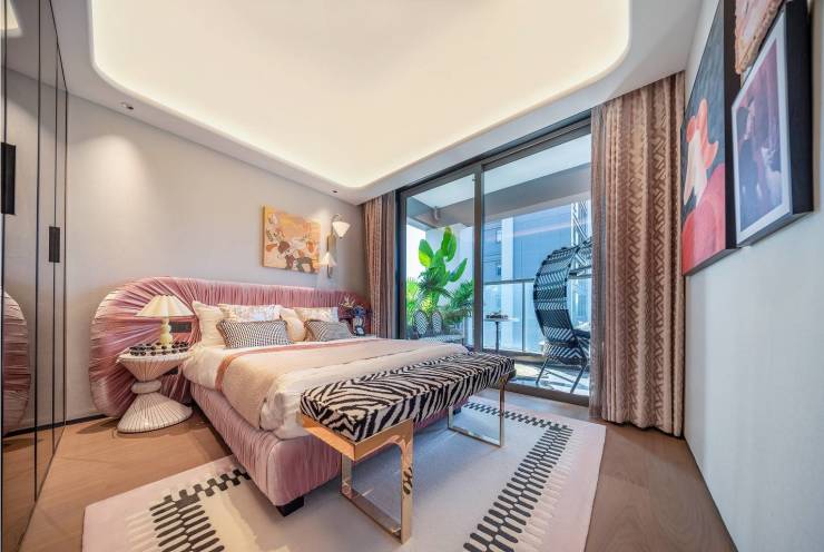 同时,公共区域的宽敞尺度,更让空间自带从容气质,家庭娱乐、办公、休息等多种功能都能轻松容纳;而主卧与客厅同侧布局,景观面佳,还有单独设立的衣帽间,更添私密尊崇;次卧区域则既是两间独立卧室,也能改造成一间温馨套房,可随着家庭结构的变化随时调整,连通的休闲阳台兼顾实用与趣味,亦能适配多元的生活需求。