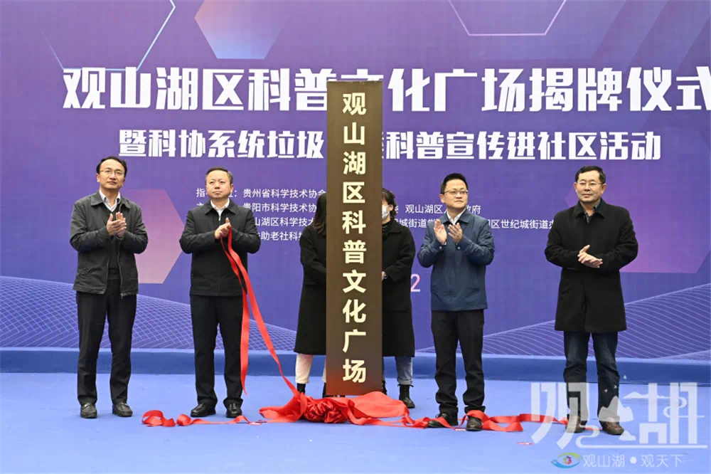 贵州省科学技术协会党组书记、副主席向虹翔,贵阳市科协党组书记杨菲,观山湖区委书记罗杨,副区长刘俊生出席活动并为观山湖区科普文化广场揭牌。