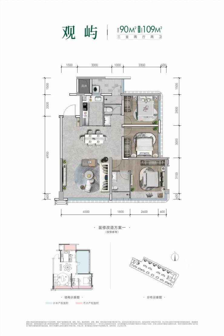90㎡平层户型赠送面积约20平,参考均价8900-9500元/平左右,朝南,2T4